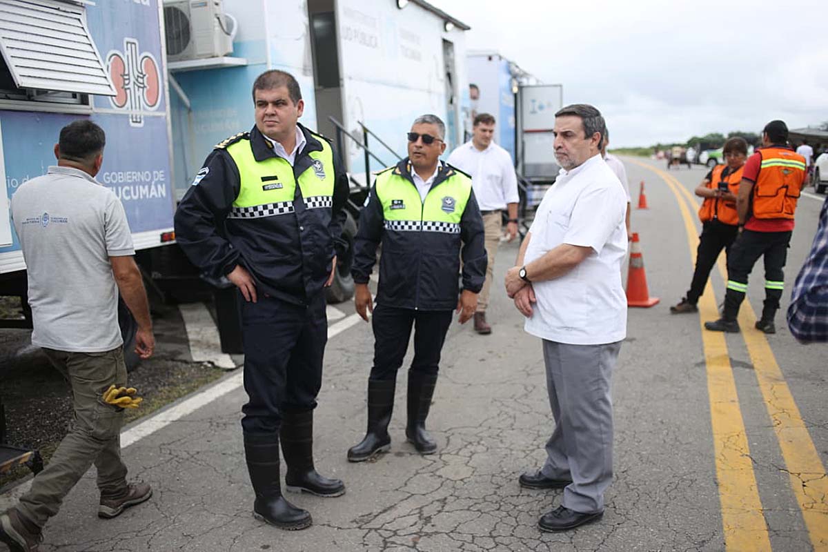 El ministro detalló que en La Madrid se instaló un amplio dispositivo de atención con más de cien profesionales de la salud, cuatro ambulancias, tres tráileres sanitarios y carpas preparadas para brindar asistencia médica, enfermería y contención a los vecinos. Asimismo, indicó que se prioriza el traslado de pacientes con enfermedades de base hacia centros de mayor complejidad, como el hospital de Simoca, ya que el hospital local se encuentra rodeado de agua y no puede recibir internaciones.