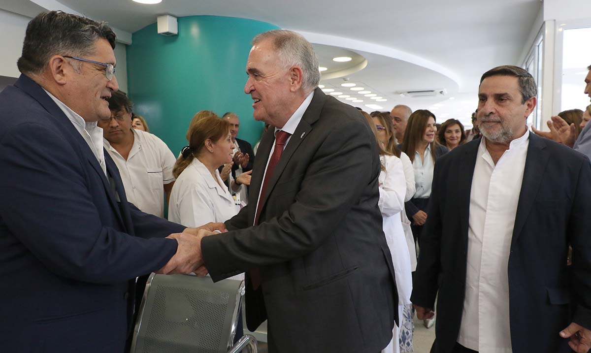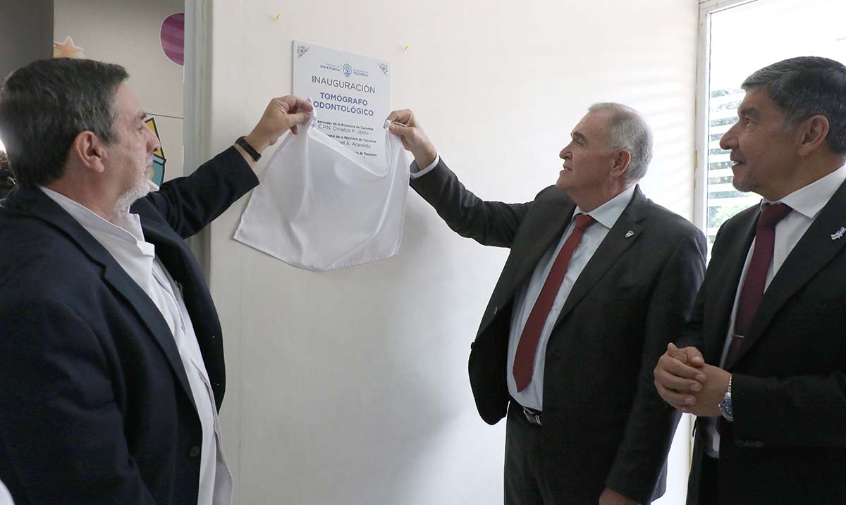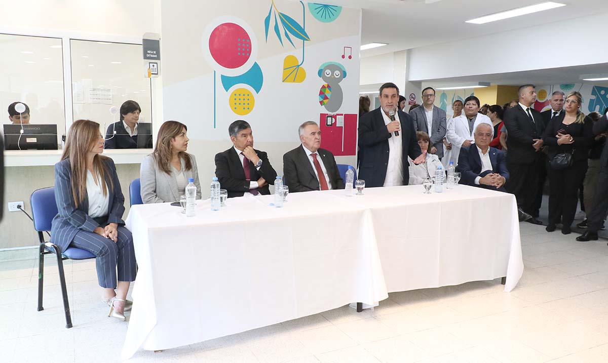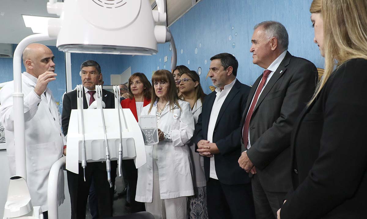 El gobernador de la Provincia, contador Osvaldo Jaldo, junto al ministro de Salud Pública, doctor Luis Medina Ruiz, encabezó este lunes la inauguración de la refacción integral de los consultorios y la incorporación de equipamiento de alta complejidad en el Servicio de Odontología del Hospital del Niño Jesús, en el marco de una fuerte política de fortalecimiento del sistema sanitario público.