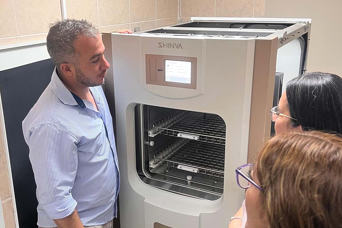 Se trata de un equipo modelo SHINVA 100 X, que realiza procesos de esterilización a baja temperatura en ciclos cortos, de entre 30 minutos y una hora. Esta tecnología está especialmente indicada para materiales termosensibles o termolábiles, con escasas limitaciones de uso y múltiples ventajas operativas.