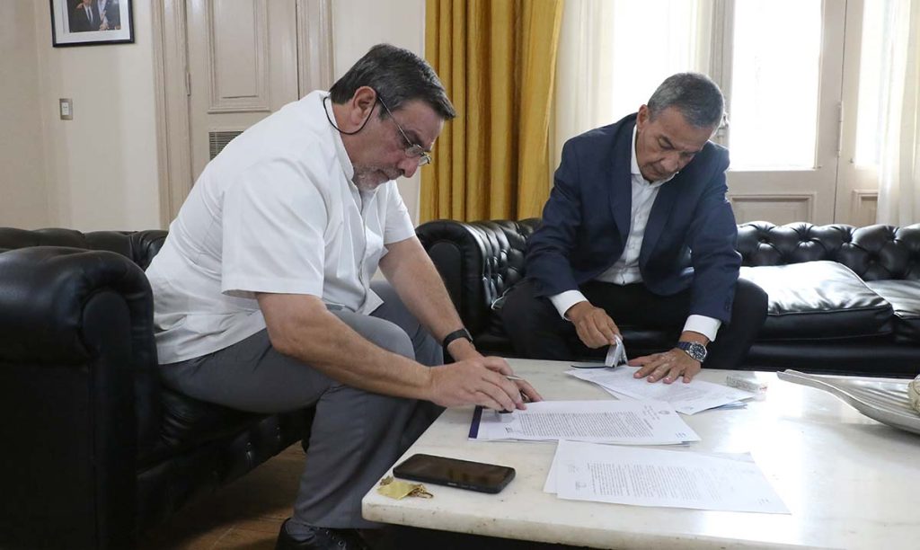 En una acción articulada entre distintas áreas del Estado provincial, el ministro de Salud Pública, doctor Luis Medina Ruiz, recibió al secretario de Estado de Producción, Eduardo René Castro, con quien concretó la firma de un acuerdo de comodato por 30 años que permitirá la cesión de un inmueble ubicado en el predio ferial para uso sanitario.