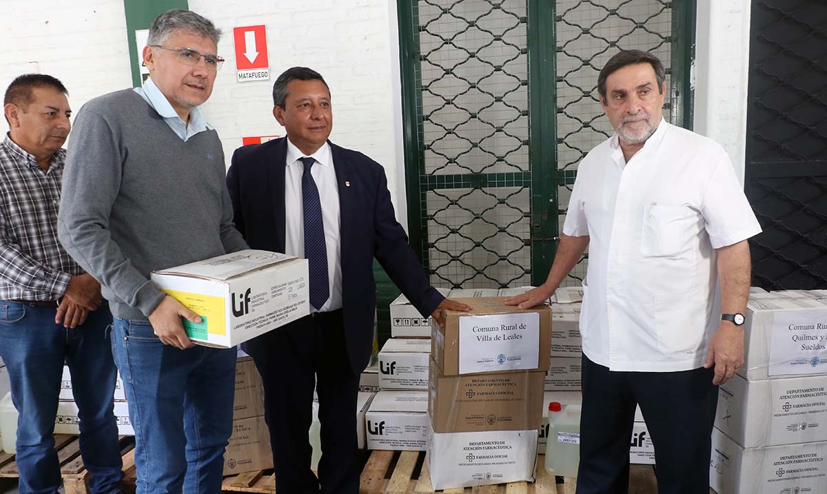 En el depósito central del Ministerio de Salud Pública se realizó la entrega de 40.000 repelentes y un contenedor con insumos de citronela destinados a 21 comunas y dos municipios del interior, en el marco de las acciones de prevención contra el dengue y chikungunya. El acto fue encabezado por el ministro de Salud Pública, doctor Luis Medina Ruiz, junto al ministro del Interior, Darío Monteros, con la presencia de delegados comunales y autoridades del Poder Ejecutivo. La iniciativa se desarrolló gracias al apoyo del gobernador Osvaldo Jaldo para fortalecer las medidas de cuidado y prevención en toda la provincia.