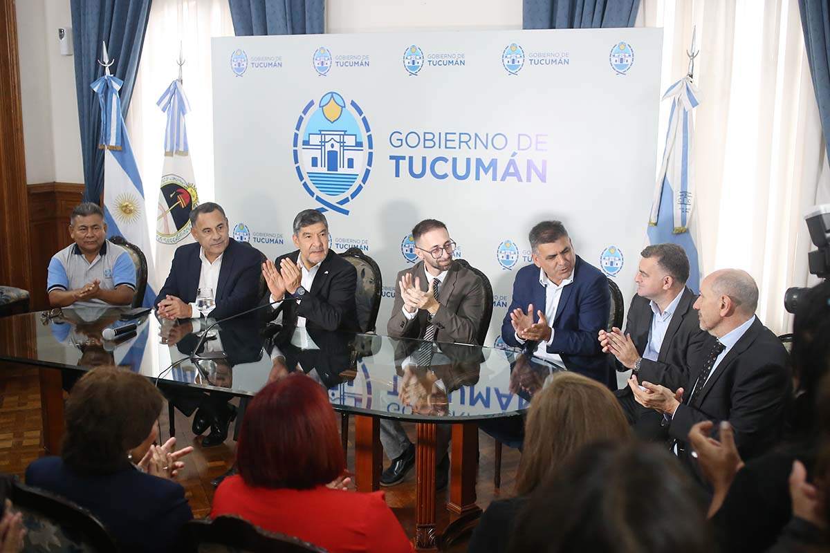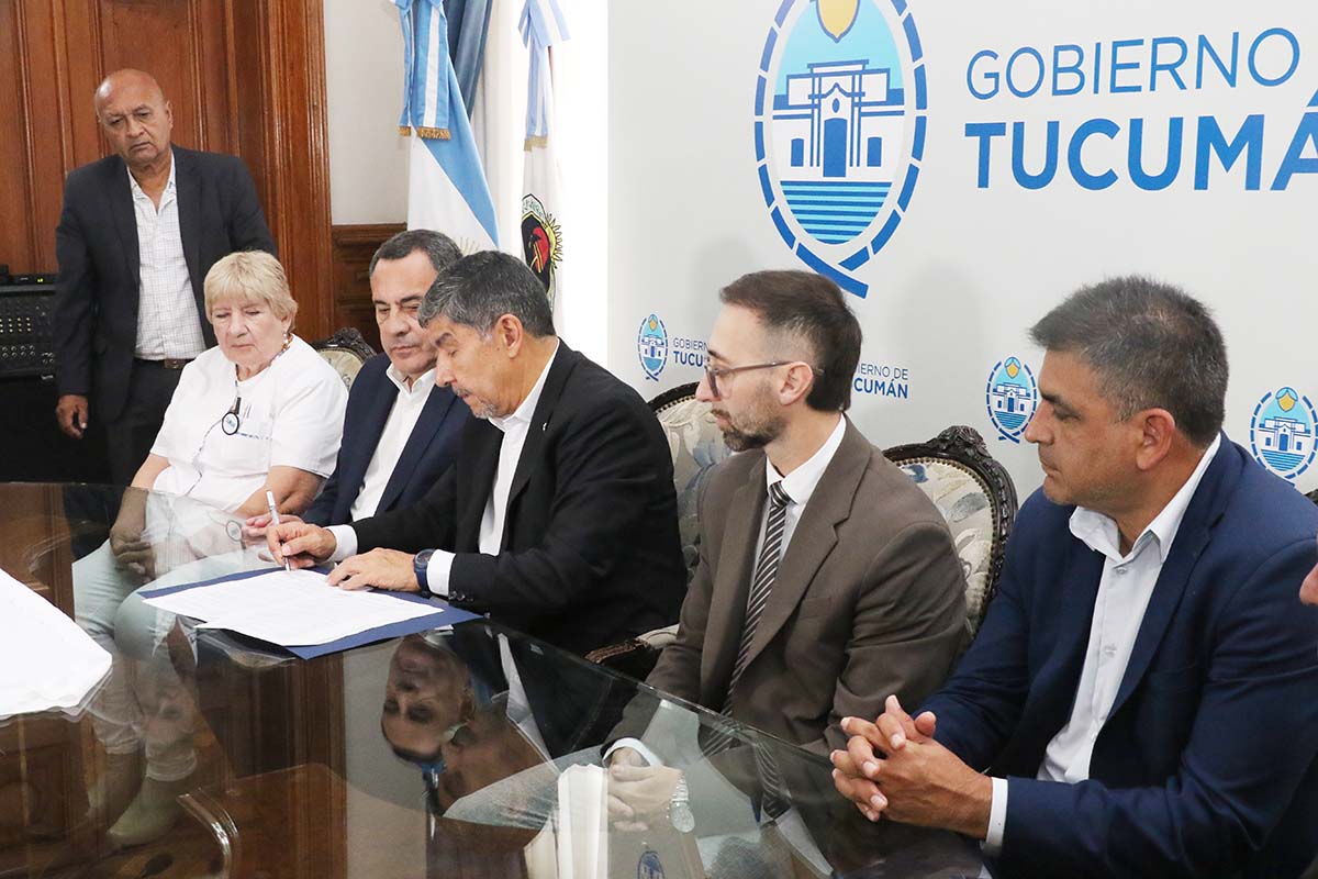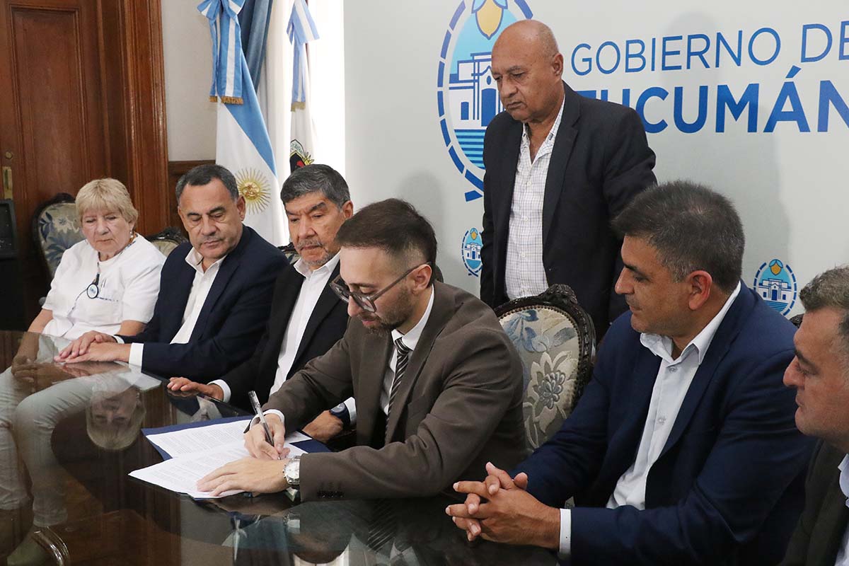 En el marco de las políticas de gestión impulsadas por el gobernador Osvaldo Jaldo, el vicegobernador de la provincia, contador Miguel Acevedo, junto al ministro de Gobierno y Justicia, Regino Amado, encabezaron la jornada de firmas de actas acuerdo por paritarias del sector Salud. El encuentro inició con la Asociación de Trabajadores de la Sanidad Argentina (ATSA) y continuó con la participación de los distintos gremios del sector, entre ellos SUMAR, la Asociación de Médicos Empleados (AME), el Sindicato de Trabajadores Autoconvocados de la Salud de Tucumán (SITAS), representantes de ATE y UPCN, consolidando un acuerdo que garantiza mejores condiciones salariales para los trabajadores de la sanidad.