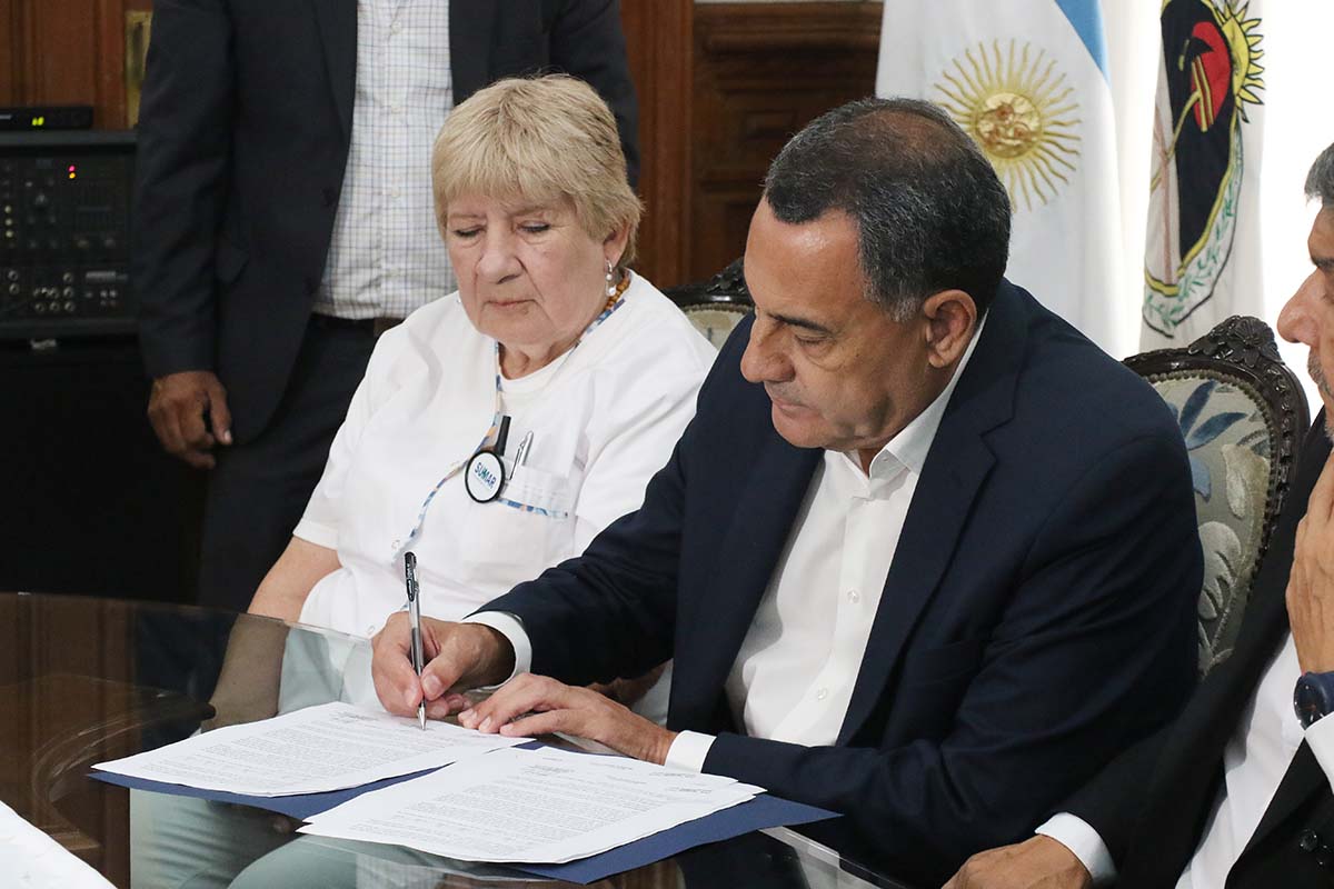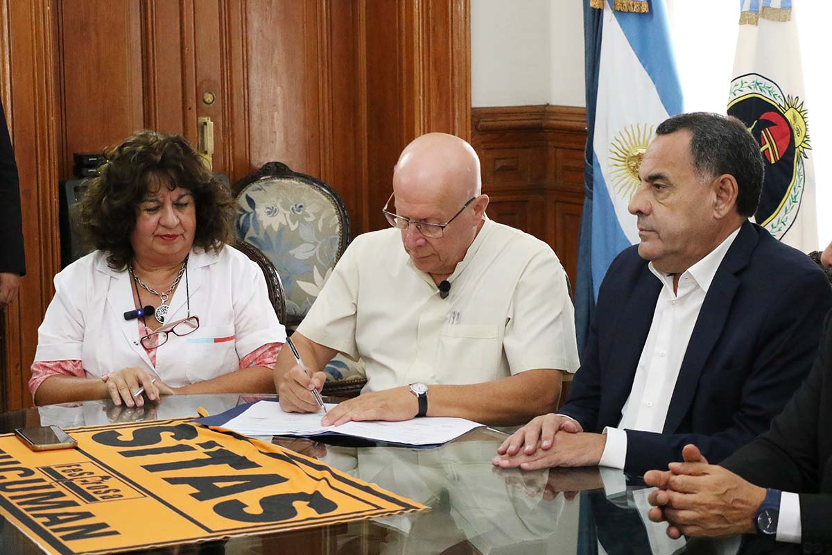 Por su parte el doctor Julián Nassif, en representación del Sindicato de Trabajadores Autoconvocados de la Salud de Tucumán (SITAS), destacó: “Llegamos a esta nueva instancia porque el 91% de nuestras asambleas, que en todo el territorio de la provincia han ocurrido en el día de ayer, han mandatado a esta Comisión Directiva a dar el paso que hoy se está concretando y que implica haber obtenido el reconocimiento de una deuda de los cuatro últimos meses, los dos últimos del año pasado y los dos primeros del año en curso y haber establecido un mecanismo de actualización automática, por la cual cada trimestre el sueldo se actualizará. En ambas circunstancias la actualización del sueldo es llevada a la base de cálculo y también hemos obtenido una respuesta y avanzamos con el pago de la ley de carrera sanitaria. La actualización de guardias críticas, de libres disponibilidades y otros aspectos de índole económico, determinaron llegar a concretar esta firma hoy con el Poder Ejecutivo de la provincia”.